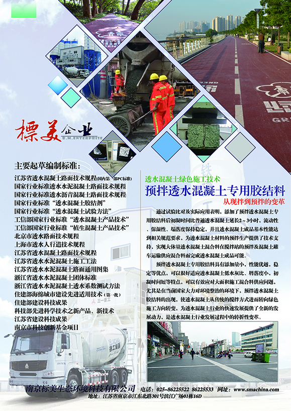 標美透水混凝土預拌綠色施工技術(shù)……專用透水混凝土膠凝材料,使透水混凝土混合料更適合罐車長距離運輸,是透水混凝土施工技術(shù)從傳統(tǒng)現(xiàn)拌到廠拌,是城市建設(shè)施工環(huán)境控制、保護的適應性變革,同時也能大大提高工程建設(shè)效率,節(jié)約工程建設(shè)時間成本等。